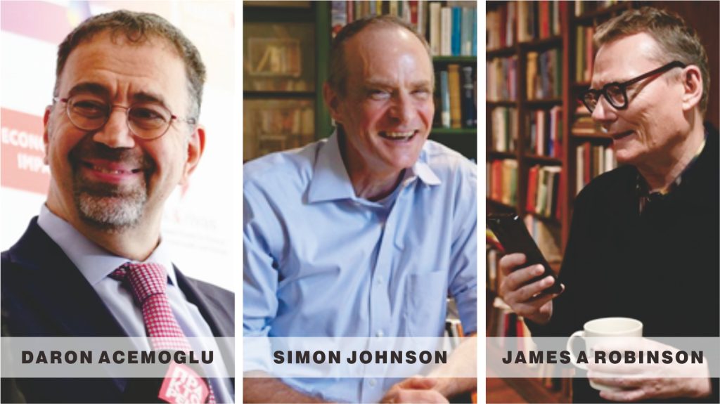 Tahun ini Hadiah Nobel di bidang ekonomi diberikan kepada  Daron Acemoglu, Simon Johnson, dan James A.  Robinson. Komite Nobel Ekonomi menilai studi mereka mengenai penyebab ketimpangan kesejahteraan antara negara kaya dan miskin  relevan di saat kondisi demokrasi, ekonomi politik, dan tata kelola pemerintahan merapuh di banyak negara.