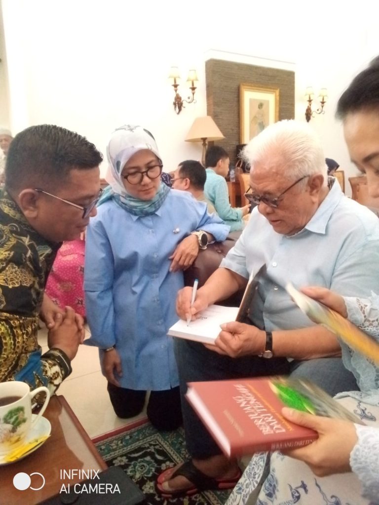 Sementara itu, Tryana Sjam’un mengajak kami yang hadie untuk mendoakan agar Iftitah dan Andra dapat menjalankan tugas mereka dengan sebaik-baiknya. TS selalu mengingatkan, siapa pun, yang mendapat tugas di pemerintahan hendaknya berpegang teguh pada etika yaitu bermoral, ber-ahlak, dan Integritas. Yaitu jujur dan tulus, supaya kita selamat didunia dan diakhirat kelak.